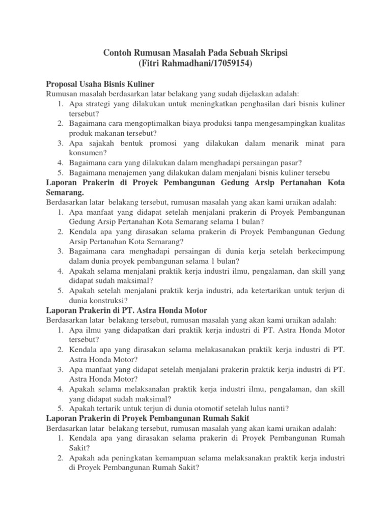 Doc Rumusan Masalah Penelitian Rady M Yustiawardhana Academia Edu